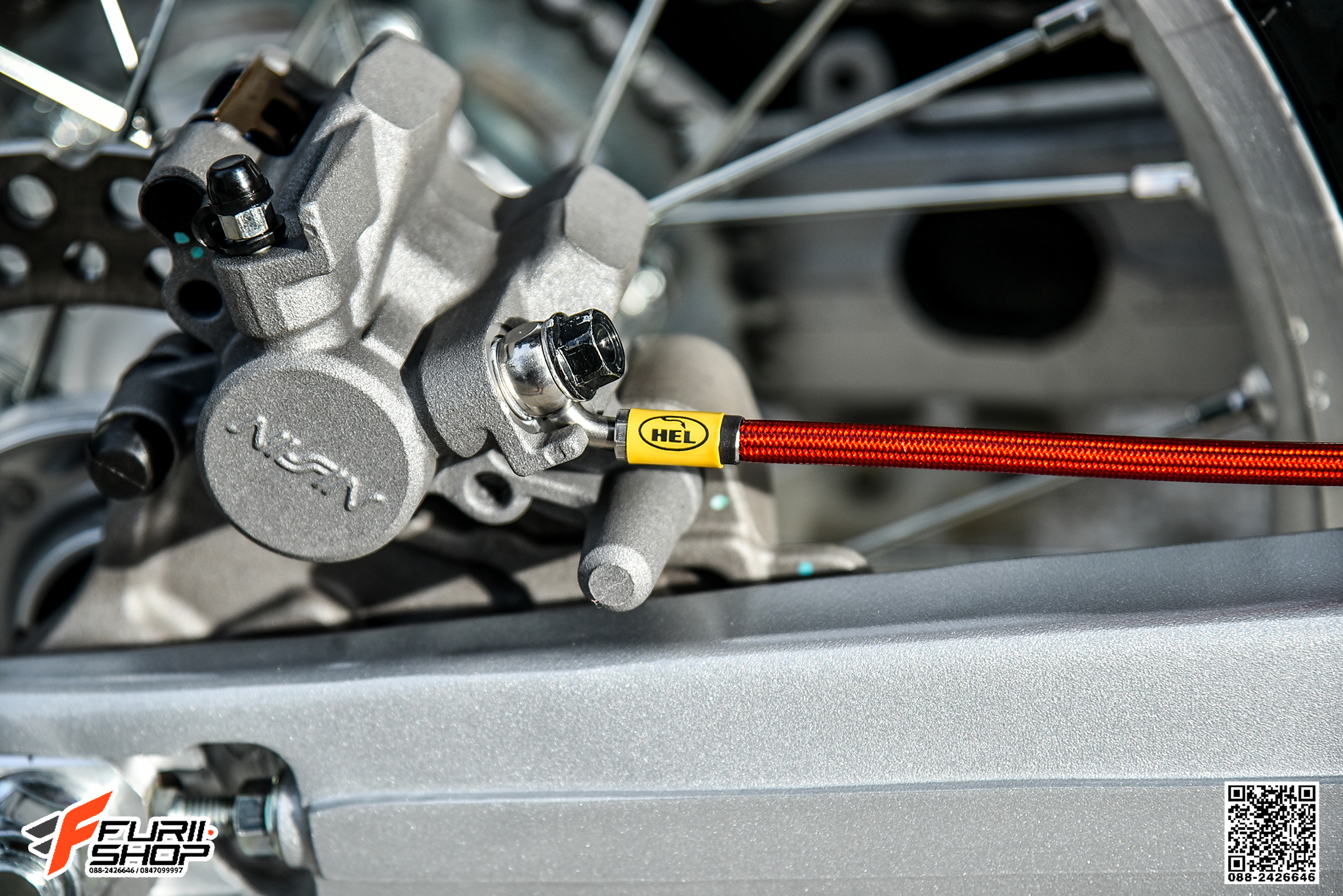 สายHEL HONDA CRF250 เดินทางเดิม หน้า-หลัง สายสีแดง หัวเบนโจสีเงิน