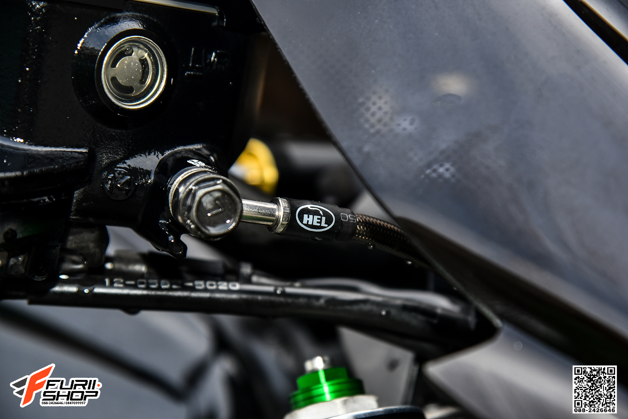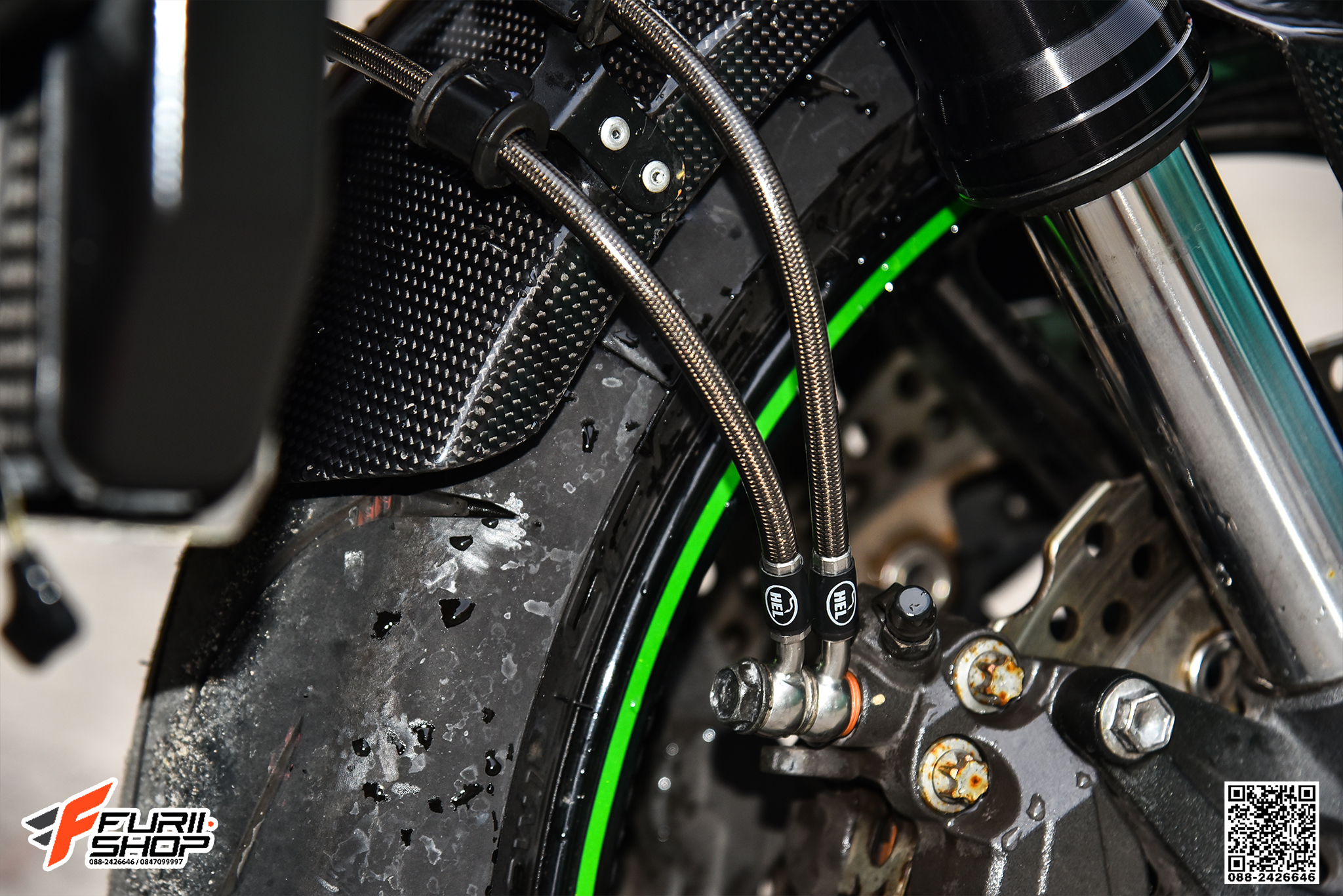 สายHEL KAWASAKI Z800 เดินทางเดิม หน้า-หลัง สายCARBON หัวเบนโจสีเงิน
