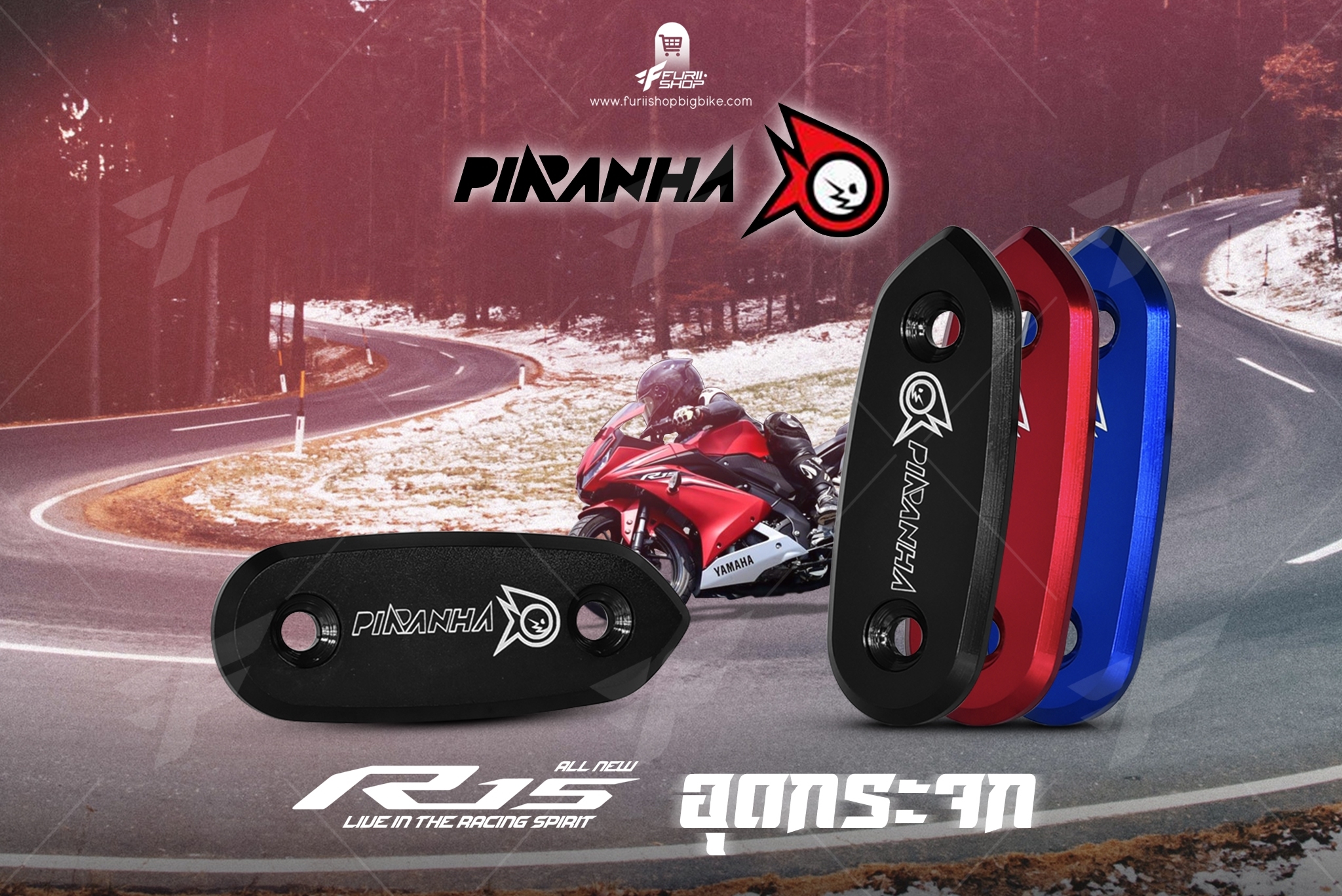 อุดกระจก PIRANHA สีดำ FOR YAMAHA R15 2017