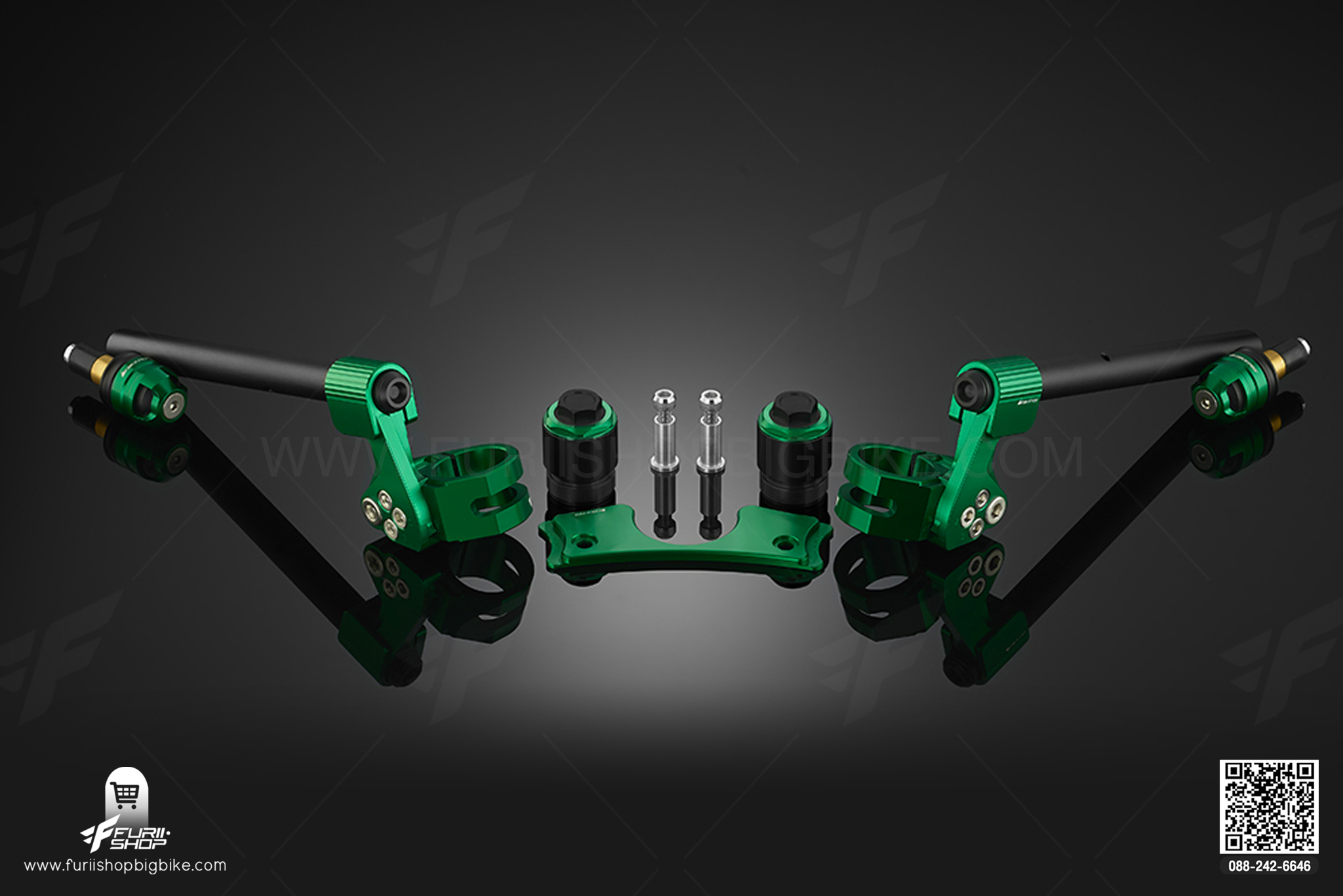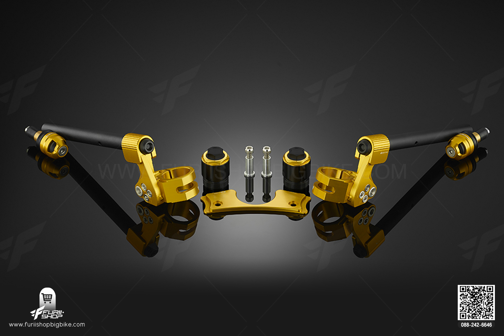 ชุดแฮนด์จับโช๊ค แผ่นสเกลปรับองศา และตุ้มปลายแฮนด์ (Adjustable Handle Bar Set with handle Bar caps) Kawasaki Ninja 650 (2017-2019)