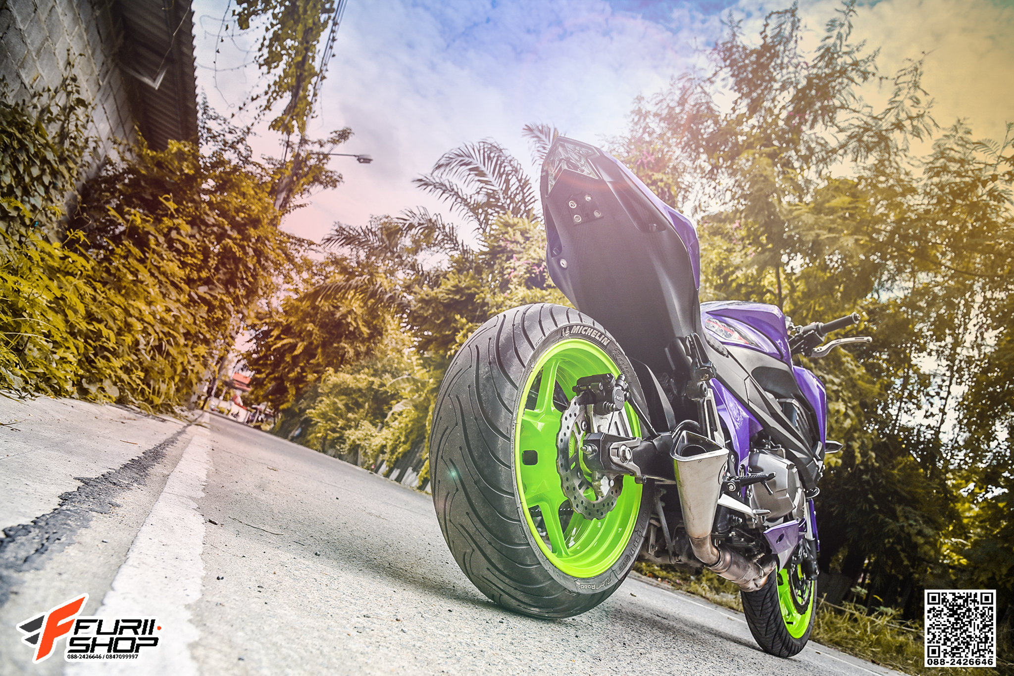 KAWASAKI Z800 ทำสีม่วงPURPLE สีล้อเขียวมะนาว