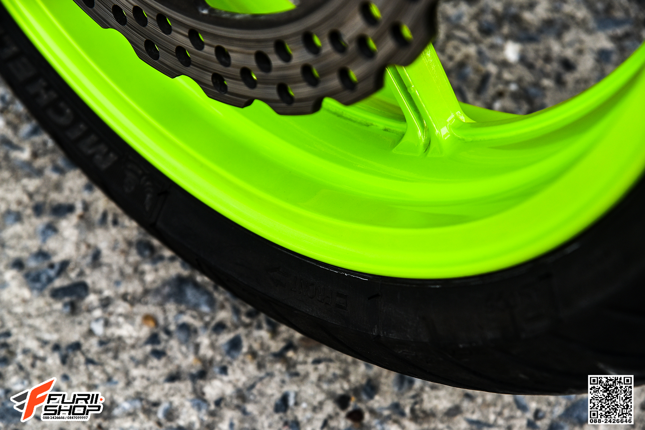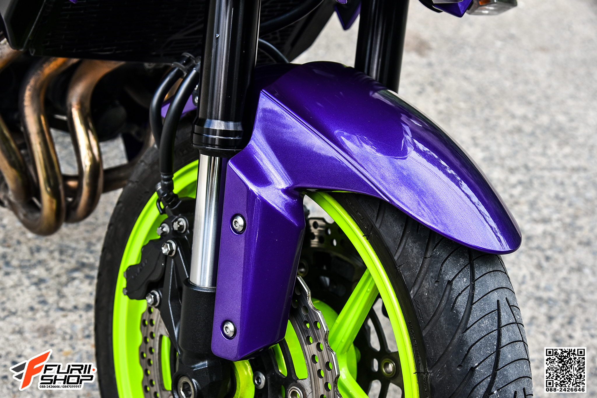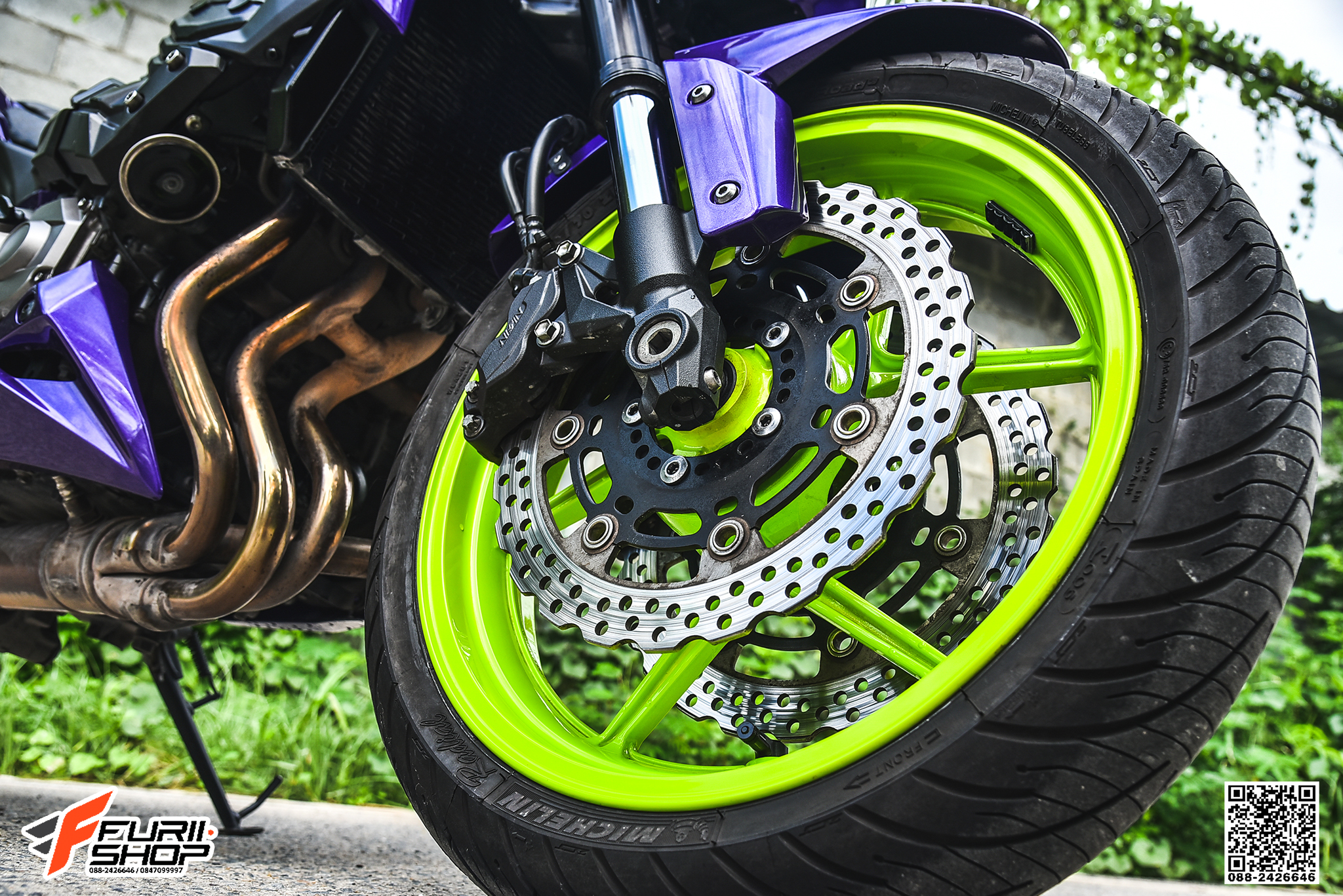 งานทำสี KAWASAKI Z800 สีม่วง ล้อเขียวมะนาว