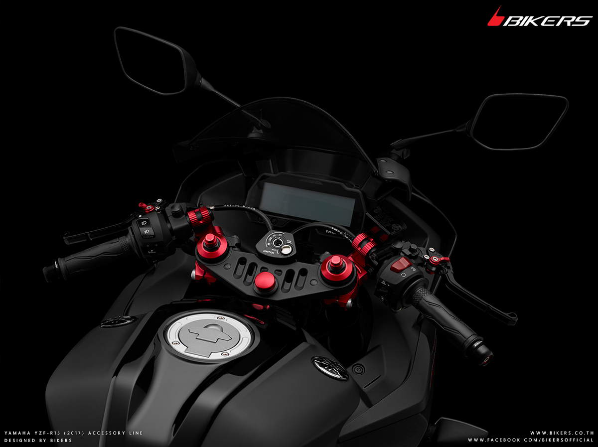 ตัวปรับโช๊คหน้าพร้อมประแจปรับโช๊ค BIKERS สีแดง FOR YAMAHA R15 2017